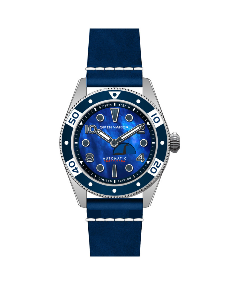 Within the SPINNAKER collection, the Fleuss Automatic model is available in a limited edition dedicated to the legend of the Loch Ness Monster. Inspired by the spirit of Scotland, Spinnaker developed this version with the Scottish flag subtly integrated into the bezel of the stainless steel case, while Nessie appears and disappears as time passes, thanks to the small seconds sub-dial.